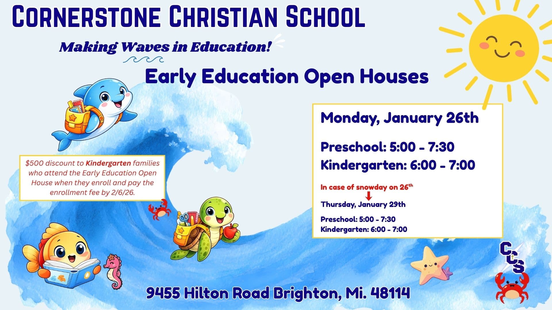 Cornerstone Christian School Preschool and Kindergarten Open Houses